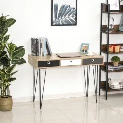 HOMCOM Table Console Moderne 2 Tiroirs Métal Et Panneau De Particules Dim. 120 X 35 X 75 Cm – Noir