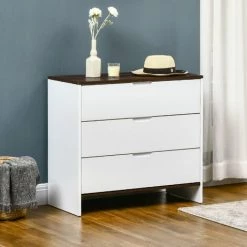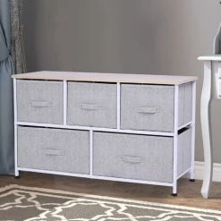 HOMCOM Commode Meuble De Rangement 5 Tiroirs En Tissu 87,5 X 29 X 58 Cm Marron Et Beige – Marron