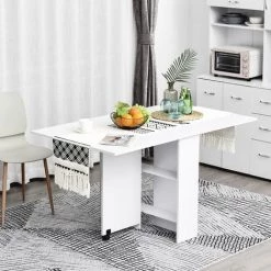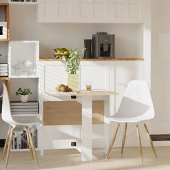 HOMCOM Table De Cuisine Pliable 103L X 76l X 74H Cm Panneaux Particules Bicolore Chêne Blanc