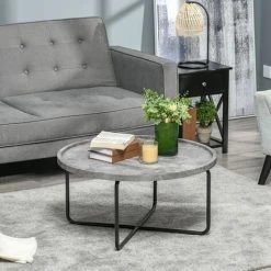 HOMCOM Table Basse Ronde Design Scandinave Dim. Ø 80 X 45H Cm Métal MDF Blanc – Blanc