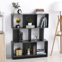 HOMCOM Bibliothèque étagère Design Contemporain En S 4 Niveaux 80L X 30l X 145H Cm Coloris Noir