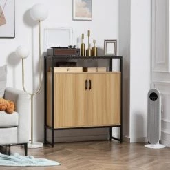 HOMCOM Buffet Bahut Vaisselier étagère Porte à Galandage Métal Noir MDF Aspect Bois Veinage Et Blanc