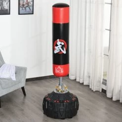 HOMCOM Sac De Frappe Punching Ball Avec Gants Et Pompe Hauteur Reglable 125 à 145 Cm