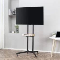 HOMCOM Support TV Sur Roulettes Meuble TV Roulant Pour écran 32-65 Pouces Hauteur Et Angle Réglable Charge Max. 50 Kg Châssis Acier Noir